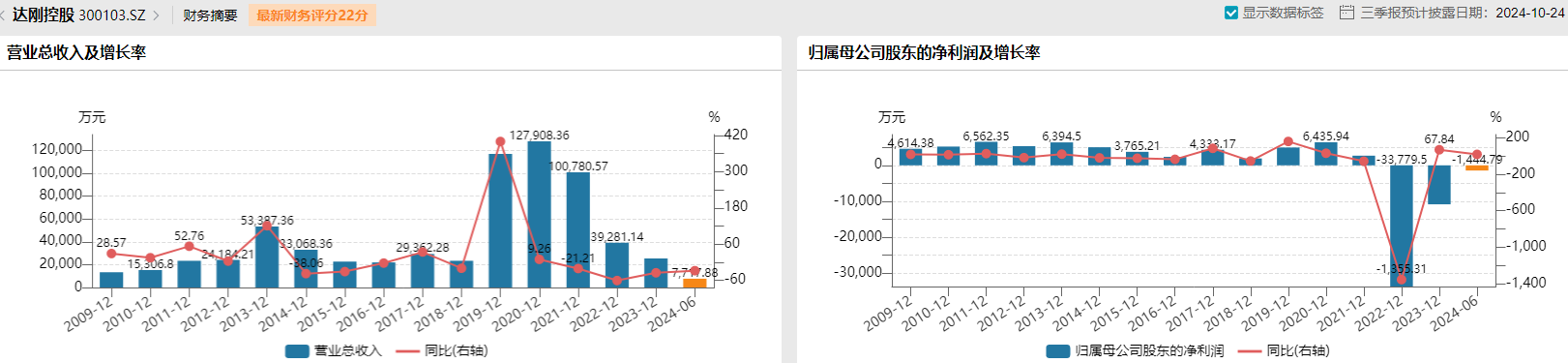 此次關(guān)聯(lián)收購反而加速達(dá)剛控股業(yè)績惡化。2019年至2021年,達(dá)剛控股歸母凈利潤分別是4969.47萬元、6435.94萬元、2690.92萬元;扣非后歸母凈利潤分別是3945.3萬元、-6030.14萬元、-1.07億元。2022年、2023年及2024年上半年,公司繼續(xù)分別虧損3.38億元、1.09億元、1444.79萬元。