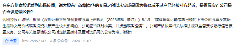 王瑞對(duì)界面新聞表示,“控股股東方面也沒有給我們最新的交易進(jìn)展消息。目前上市公司這邊沒有什么可以支撐披露的信息”。