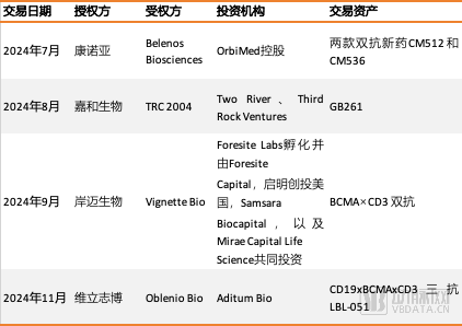 動脈網(wǎng)持續(xù)跟蹤NewCo交易發(fā)現(xiàn),海外頂級投資機構對于國內(nèi)的創(chuàng)新藥資產(chǎn),有著明顯的偏好。其中,T細胞銜接器類藥物可謂是最能滿足他們想象的管線類型之一。2024年以來,國內(nèi)Biotech已經(jīng)公布的NewCo交易共4項,所涉及的交易標的,均為在研的T細胞銜接器類藥物??梢哉f,NewCo交易帶火了T細胞銜接器類藥物這個細分賽道。