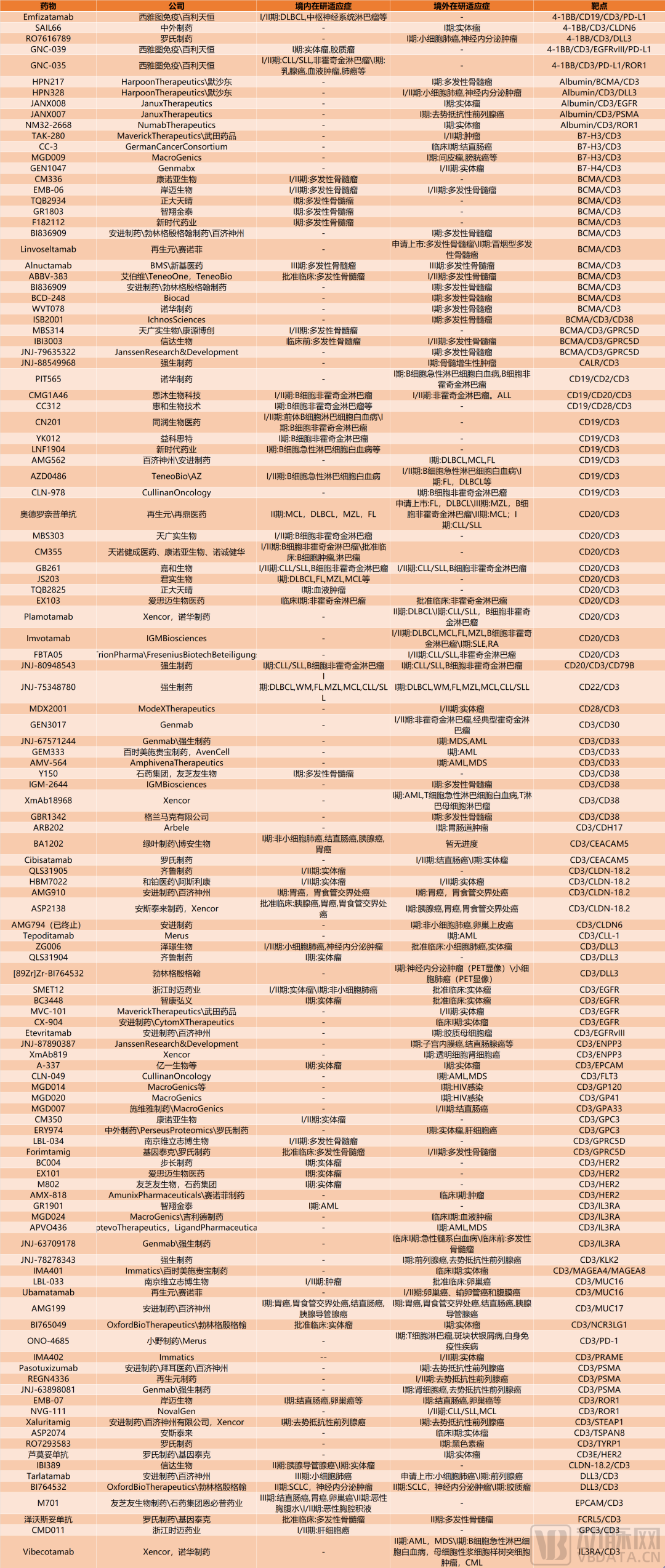 如今,隨著安進的新藥Tarlatamab(CD3/DLL3)獲批在美國上市銷售,加上T細胞抗原CD3結合CLDN18.2、EGFR、HER2等腫瘤特異性高表達靶點藥物在臨床早期展現(xiàn)良好效果,T細胞銜接器類藥物也開始拿實體瘤適應癥。而從血液瘤向實體瘤的突破,讓更多MNC看到了T細胞銜接其類藥物的臨床意義和商業(yè)價值。