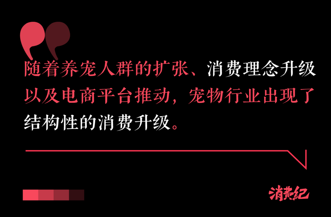 此外,消費(fèi)紀(jì)還發(fā)現(xiàn),隨著養(yǎng)寵人群的擴(kuò)張、消費(fèi)理念升級以及電商平臺推動,寵物行業(yè)也出現(xiàn)了結(jié)構(gòu)性的消費(fèi)升級。