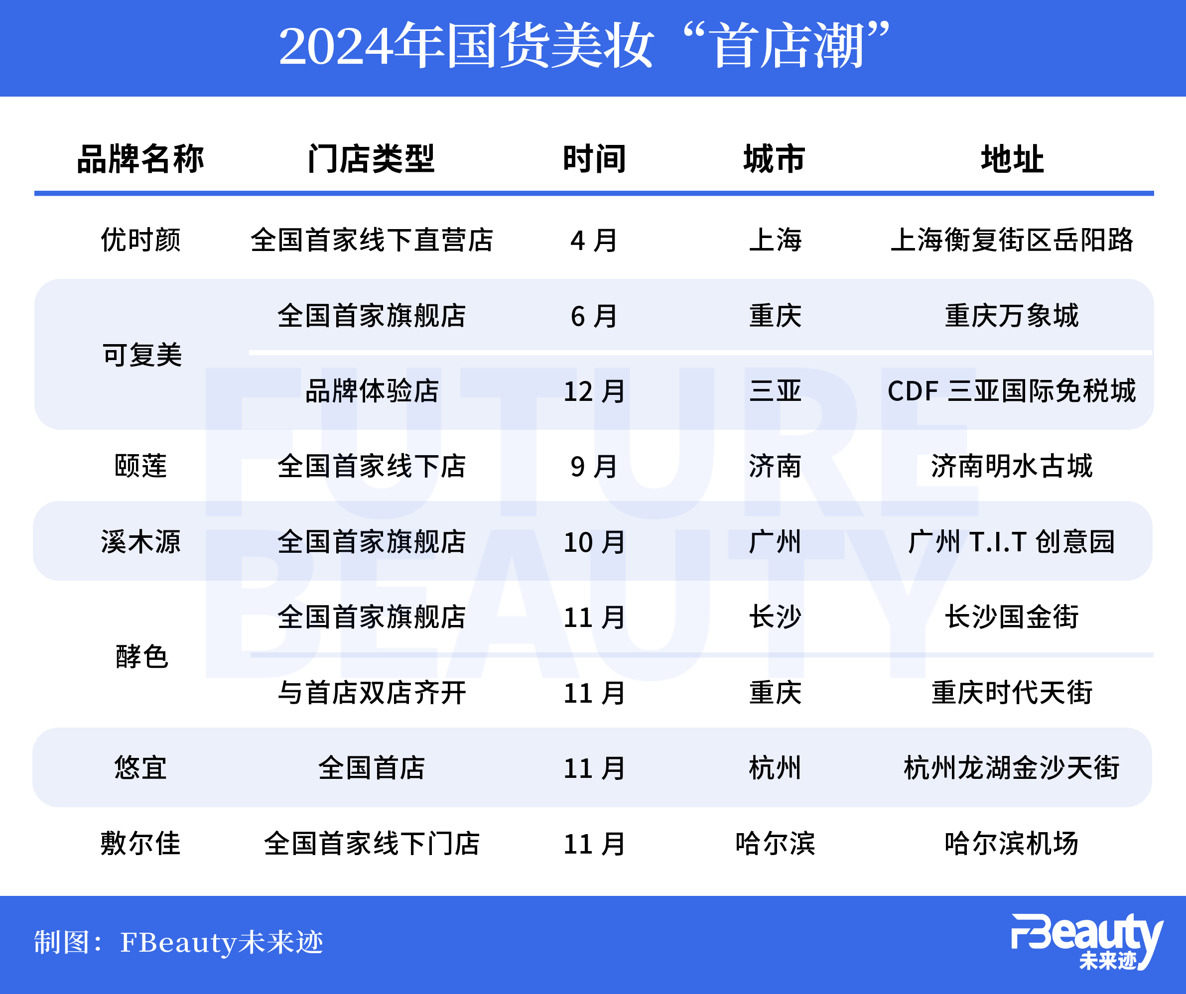 2024年,溪木源、酵色、悠宜、敷爾佳、優(yōu)時(shí)顏、頤蓮、可復(fù)美等國(guó)貨美妝,共同掀起了一場(chǎng)“線(xiàn)下首店潮”。
