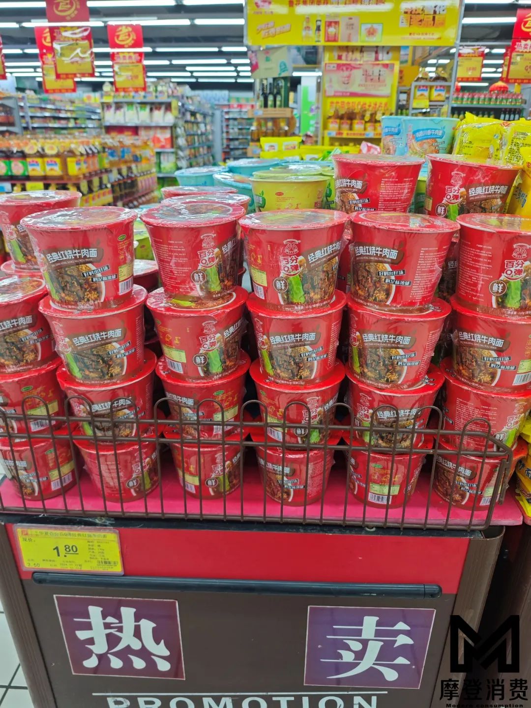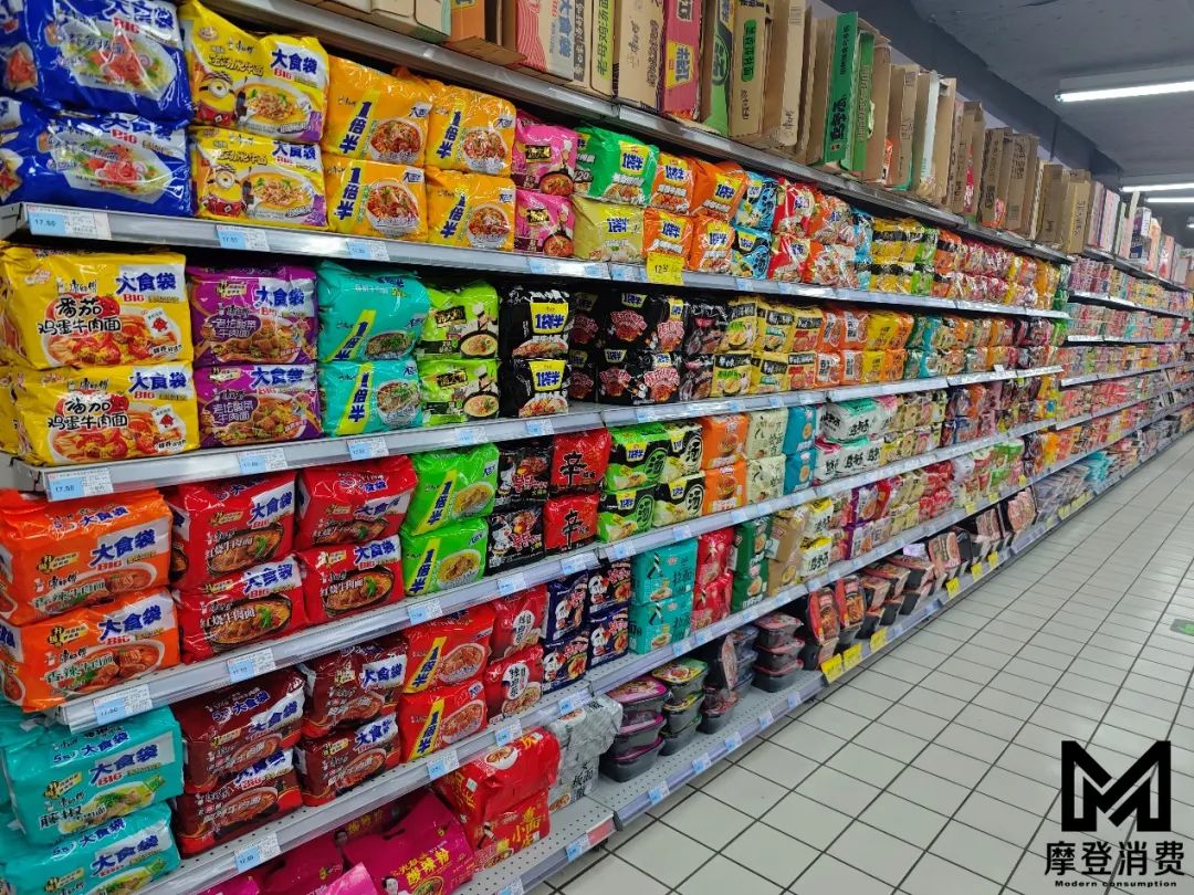 「摩登消費(fèi)」走訪商超發(fā)現(xiàn),以往占據(jù)超市顯眼位置的方便面,已經(jīng)被壓縮到了比較小的位置。