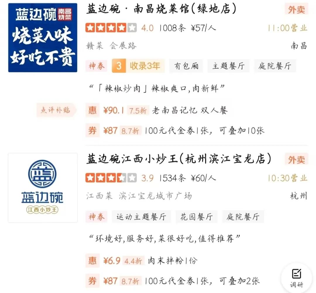 原本扎根于江西本土的江西小炒品牌也在加速往外拓店,例如藍(lán)邊碗·江西小炒王。在江西成立了近4年的藍(lán)邊碗,此前一直深耕省內(nèi),開出了近20家門店。今年3月,藍(lán)邊碗宣布開始向全國(guó)市場(chǎng)進(jìn)軍,隨后進(jìn)駐了杭州、義烏、合肥等城市。