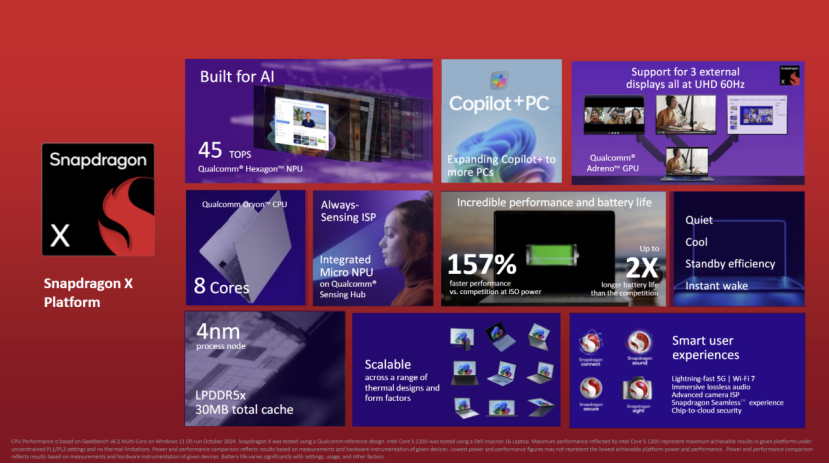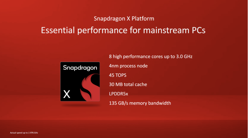 據(jù)介紹,Snapdragon X采用4納米制程工藝制造,配備高通的Oryon CPU,擁有8個(gè)核心,最高主頻可達(dá)3GHz,為下一代PC提供了強(qiáng)大的計(jì)算性能。