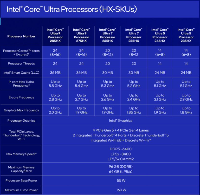 - Core Ultra 200HX系列處理器(原代號(hào)Arrow Lake HX)