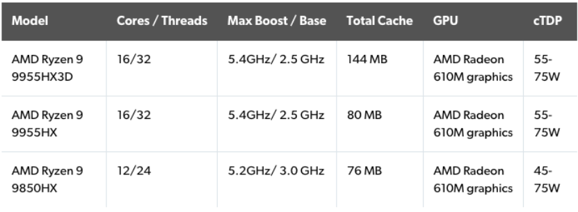 為了補(bǔ)充 Ryzen 9 9950X3D 和 9900X3D,AMD 還宣布推出針對(duì)中端筆記本電腦和超便攜電腦的全新“Fire Range”系列芯片。該系列芯片將于 2025 年上半年推出,包括 Ryzen 9 9850HX、9955HX 和 9955HX3D,提供 12 到 16 個(gè)內(nèi)核,最高主頻在 5.2GHz 到 5.4GHz 之間。