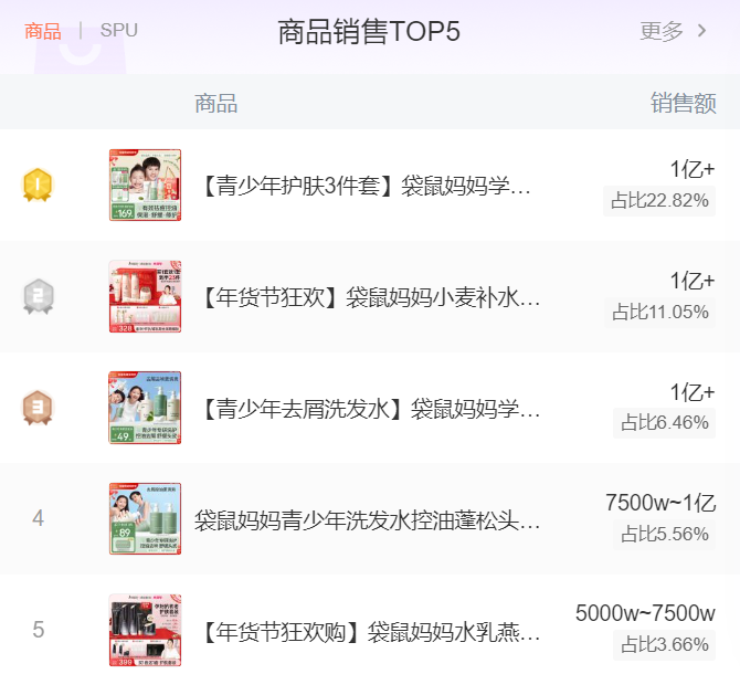 據(jù)第三方數(shù)據(jù)顯示,整個(gè)2023年,袋鼠媽媽的爆品均為孕產(chǎn)婦護(hù)理產(chǎn)品(如孕產(chǎn)婦面部、身體護(hù)膚、彩妝等),到了2024年,袋鼠媽媽增速超過(guò)了200%,高增的原因得益于新的爆品——青少年洗護(hù)產(chǎn)品的打造。