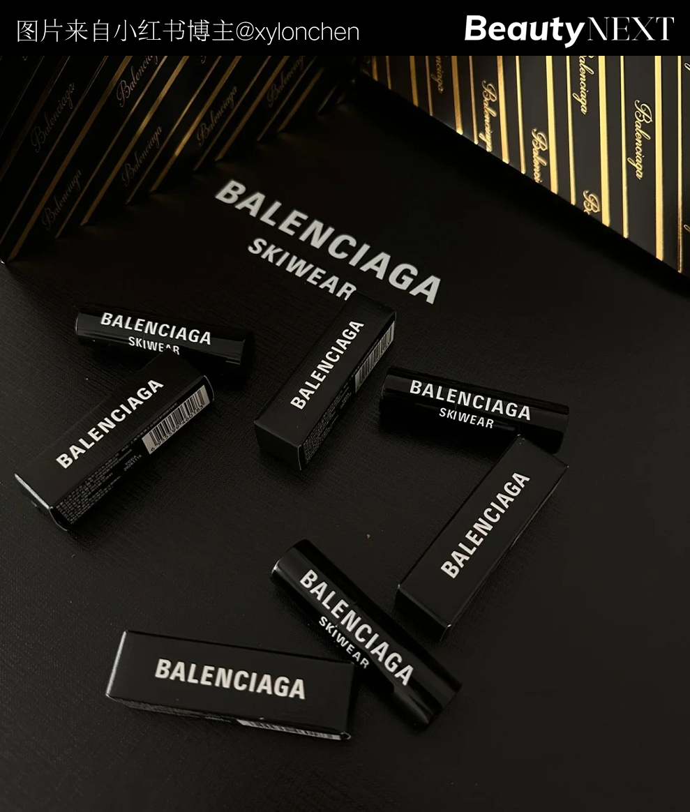 還有更多的“暗示”。2023年11月,巴黎世家在推出skiwear滑雪系列時(shí),曾將一款潤(rùn)唇膏作為禮物贈(zèng)送,這款唇膏的純黑色包裝上印有白色品牌logo,不少網(wǎng)友表示潤(rùn)唇效果不錯(cuò),并猜測(cè)品牌是否會(huì)進(jìn)軍美妝界。