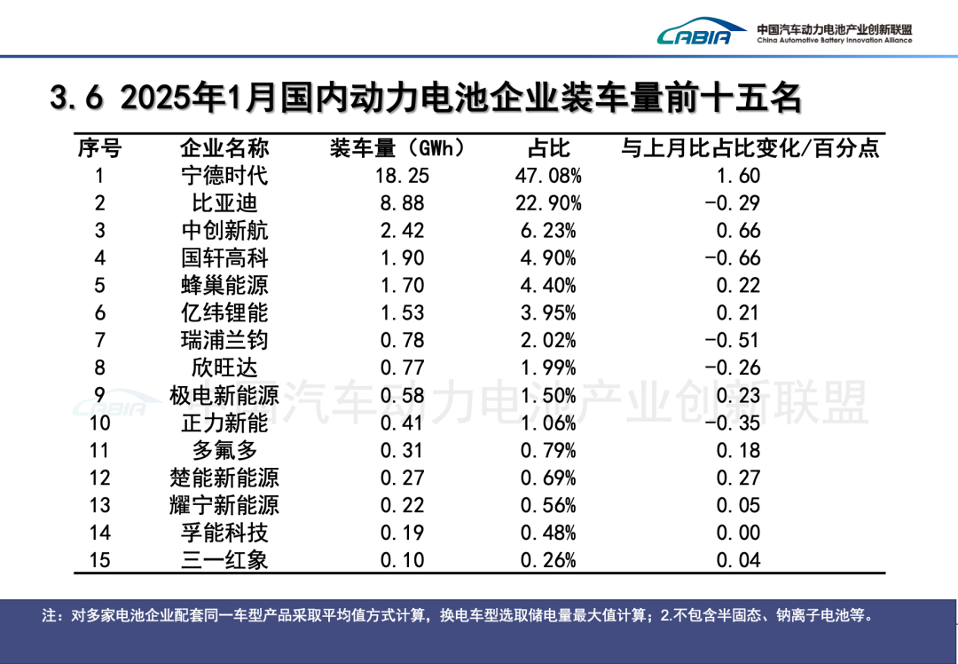 據(jù)中國(guó)汽車動(dòng)力電池產(chǎn)業(yè)創(chuàng)新聯(lián)盟2月17日公布的動(dòng)力電池最新月度信息,截至今年1月,國(guó)內(nèi)動(dòng)力電池裝車量前五排名已連續(xù)四月未發(fā)生變化。