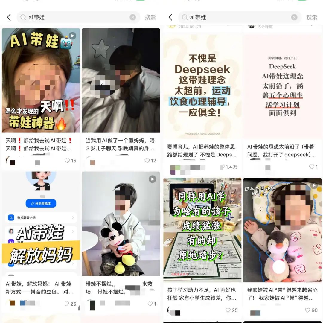 在社交平臺,AI帶娃,也成了家長們討論最為熱烈的事。在小紅書,關于AI帶娃的筆記,有超5萬篇;在抖音,關于“AI帶娃神器”話題,有超93萬次播放量。