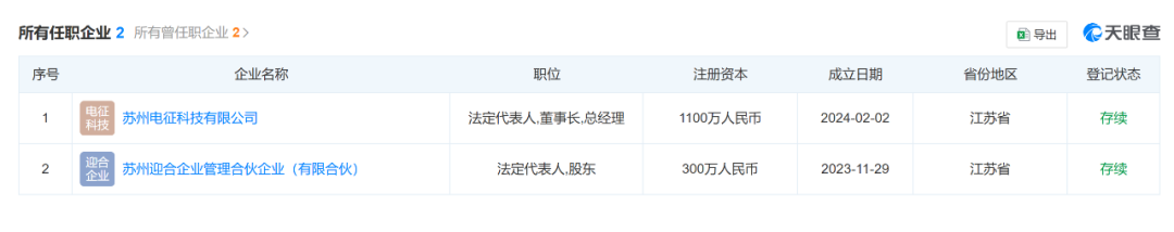 東微半導的公告中,并沒有針對付晨強背景作具體披露。據(jù)天眼查顯示,付晨強當前僅任職2家企業(yè),除了電征科技,也擔任此次交易對手方之一蘇州迎合的法人代表,并持股90%。