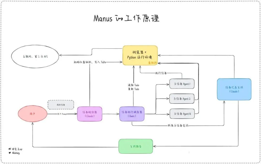 從原理上來(lái)說(shuō),Manus并不復(fù)雜。Manus 是整合了 Computer use、虛擬機(jī)、Multi agent 協(xié)同的AI產(chǎn)品。