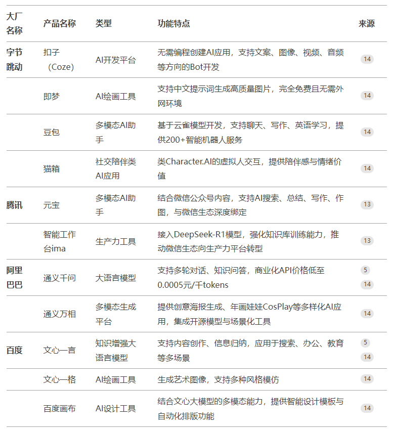現(xiàn)階段國(guó)內(nèi)大廠的AI產(chǎn)品,則普遍缺乏一些創(chuàng)意。從AI 社交到AI搜索,以及AI Coding產(chǎn)品,都是人有我有的產(chǎn)品。