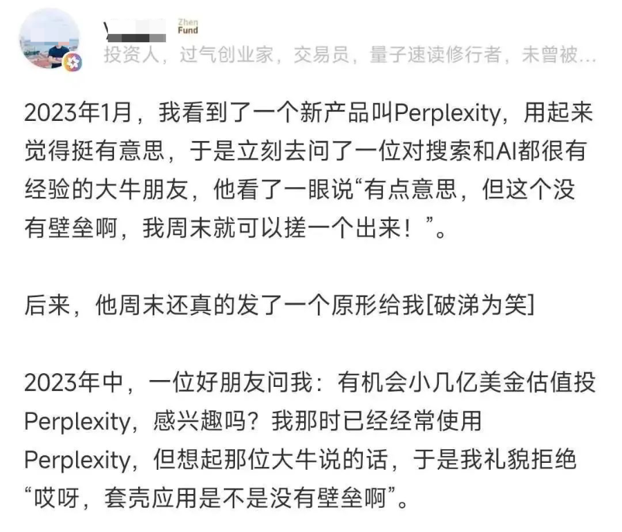某投資人因?yàn)樘讱ふ撌ネ顿YPerplexity機(jī)會(huì)