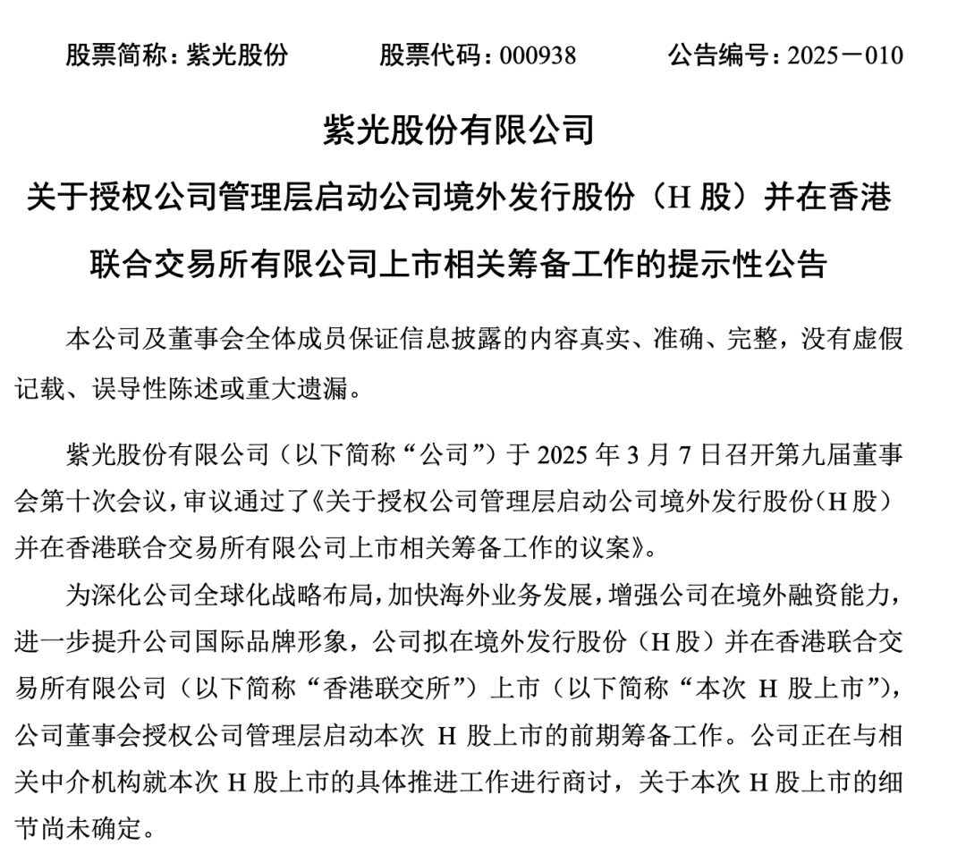 近日,A股上市26年的“國內(nèi)算力龍頭”——紫光股份(000938.SZ)宣布擬在境外發(fā)行股份(H股)并在港交所上市。據(jù)新媒體“獨角獸早知道”報道,紫光股份已選擇法國巴黎銀行、招銀國際和中信建投安排在香港第二上市計劃,可能通過IPO籌集約10億美元。
