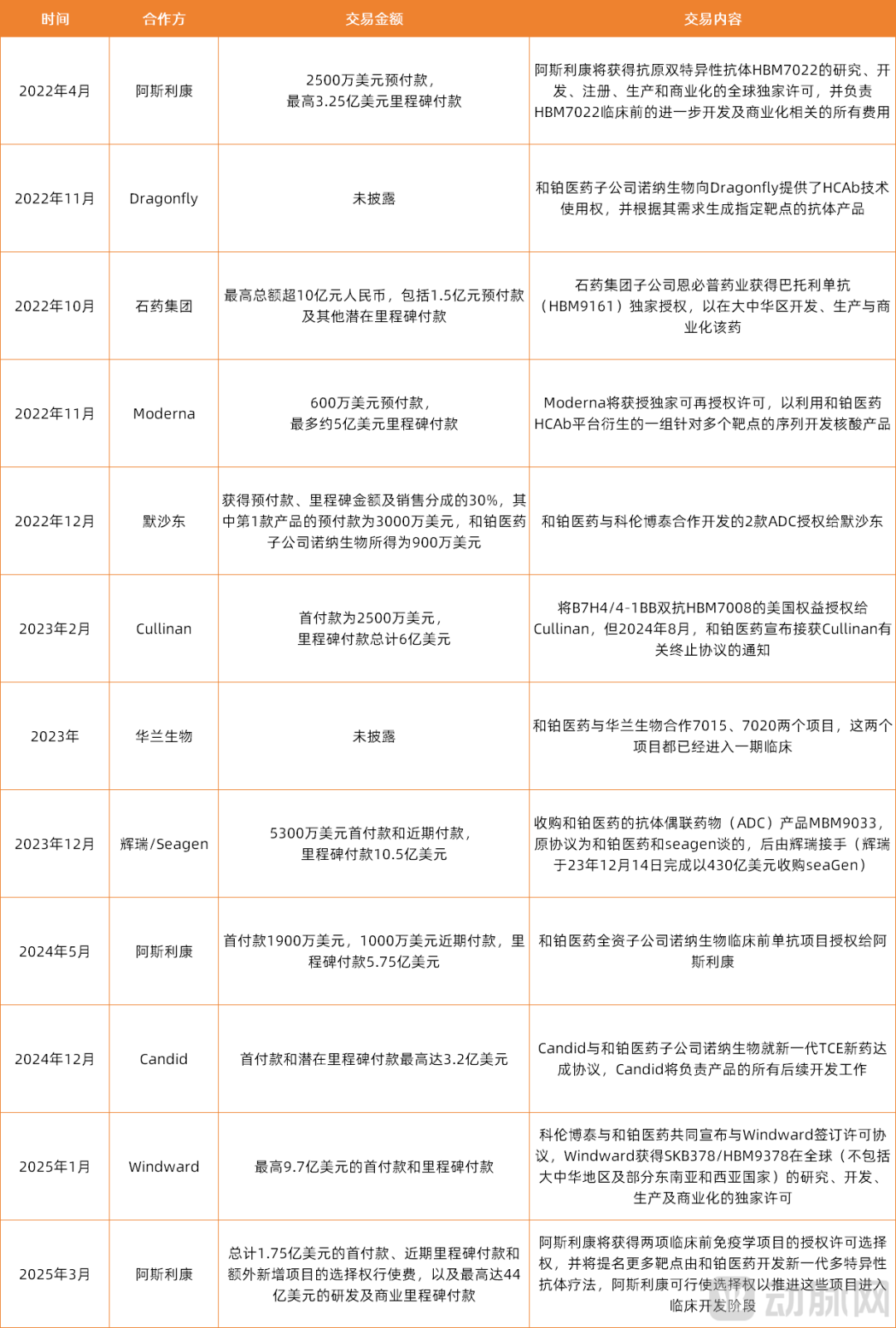 據(jù)不完全統(tǒng)計,和鉑醫(yī)藥近年BD交易