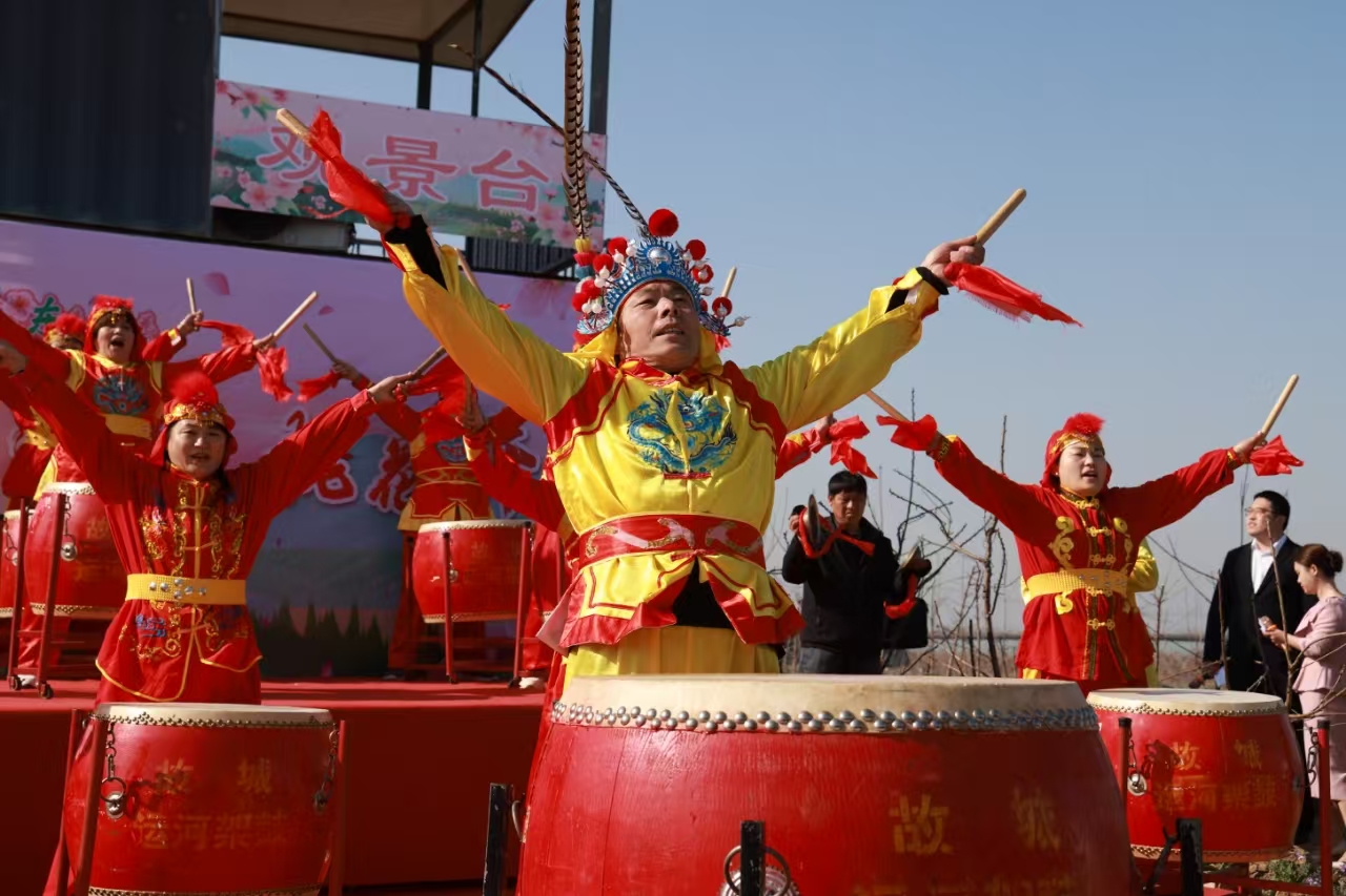 活動(dòng)當(dāng)天,一場(chǎng)融合運(yùn)河文化的非遺展演火熱上演。武官寨運(yùn)河架鼓震天撼地,鏗鏘節(jié)奏展現(xiàn)出故城人民的熱情與豪邁;歌曲《我和我的祖國(guó)》《桃花紅杏花白》、舞蹈《三月桃花開》、傳統(tǒng)曲藝西合大鼓、民間藝術(shù)二鬼摔跤等精彩節(jié)目引得觀眾連連喝彩。