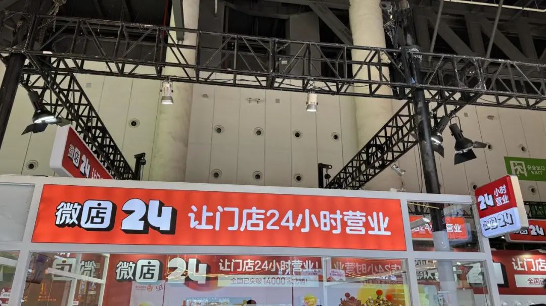 6 號食品展區(qū),微店 24 醒目的紅色展位成功吸引了剁椒。以往,大眾對微店的認(rèn)知多停留在其作為服務(wù)小微店主的電商 SaaS 平臺,而如今,微店 24 所打造的 24 小時店,已然成為一種低成本擴張的創(chuàng)新渠道新物種。