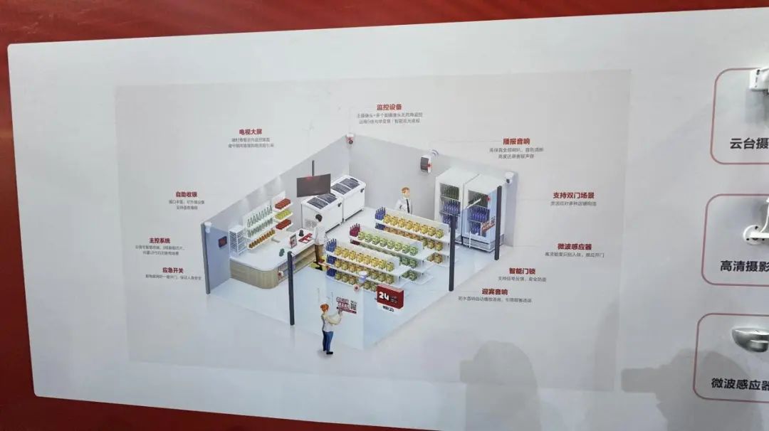 剁椒在現(xiàn)場咨詢得知,微店 24 指向延長經(jīng)營時間、降低人工成本、搶占周邊客源三大需求。店內(nèi)由高清攝像頭組成的監(jiān)控系統(tǒng),搭建起模擬智慧零售場景,顧客、騎手進店只需掃描門上二維碼,即可便捷進店,目前,全國門店已突破 14000 家。