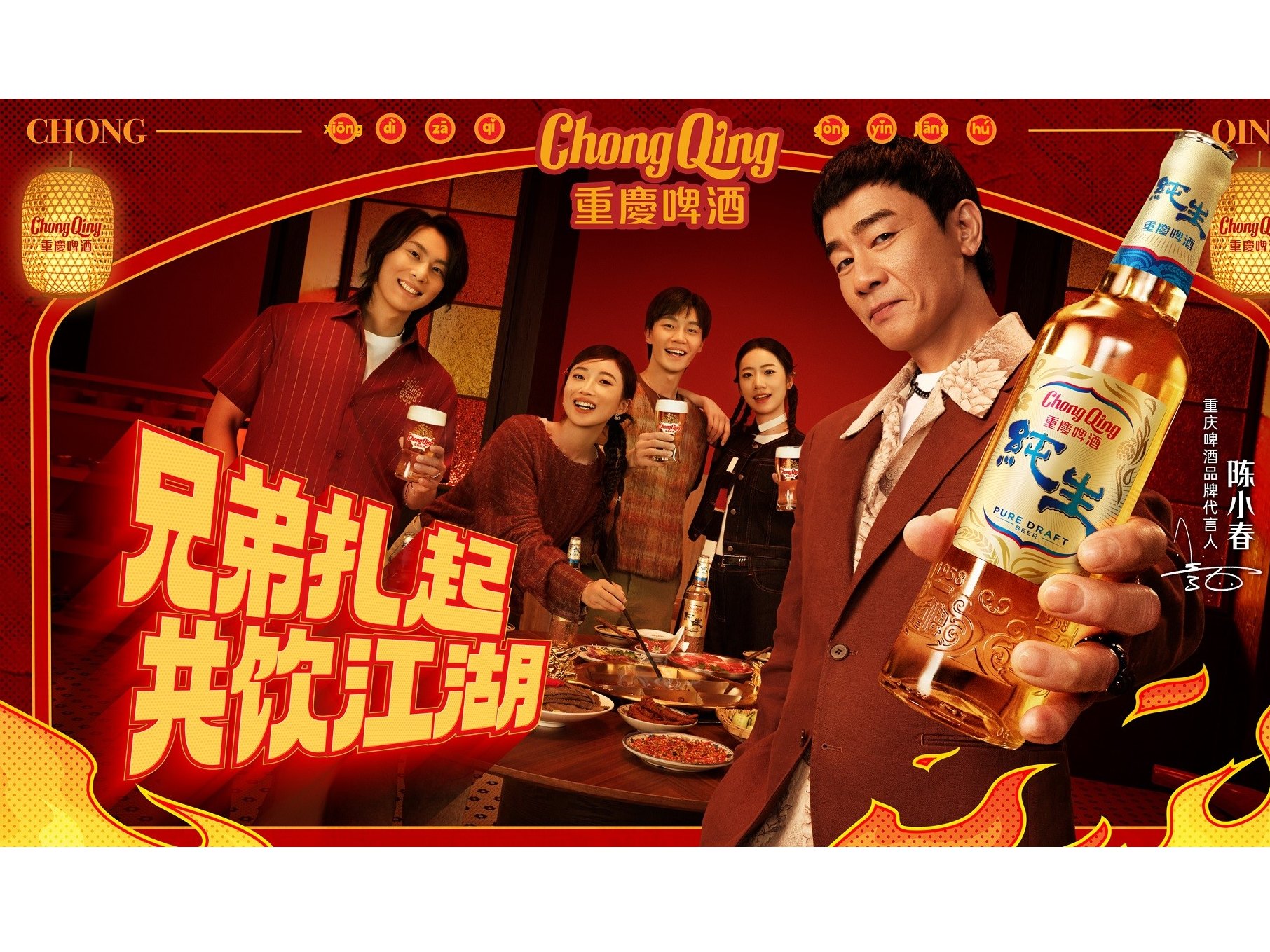 兄弟扎起,共飲江湖!此次代言合作不僅展現(xiàn)了重慶啤酒充滿活力的品牌形象,更深入傳遞了重慶兄弟伙熱辣的江湖氣質(zhì),斬獲好評(píng)無數(shù)。