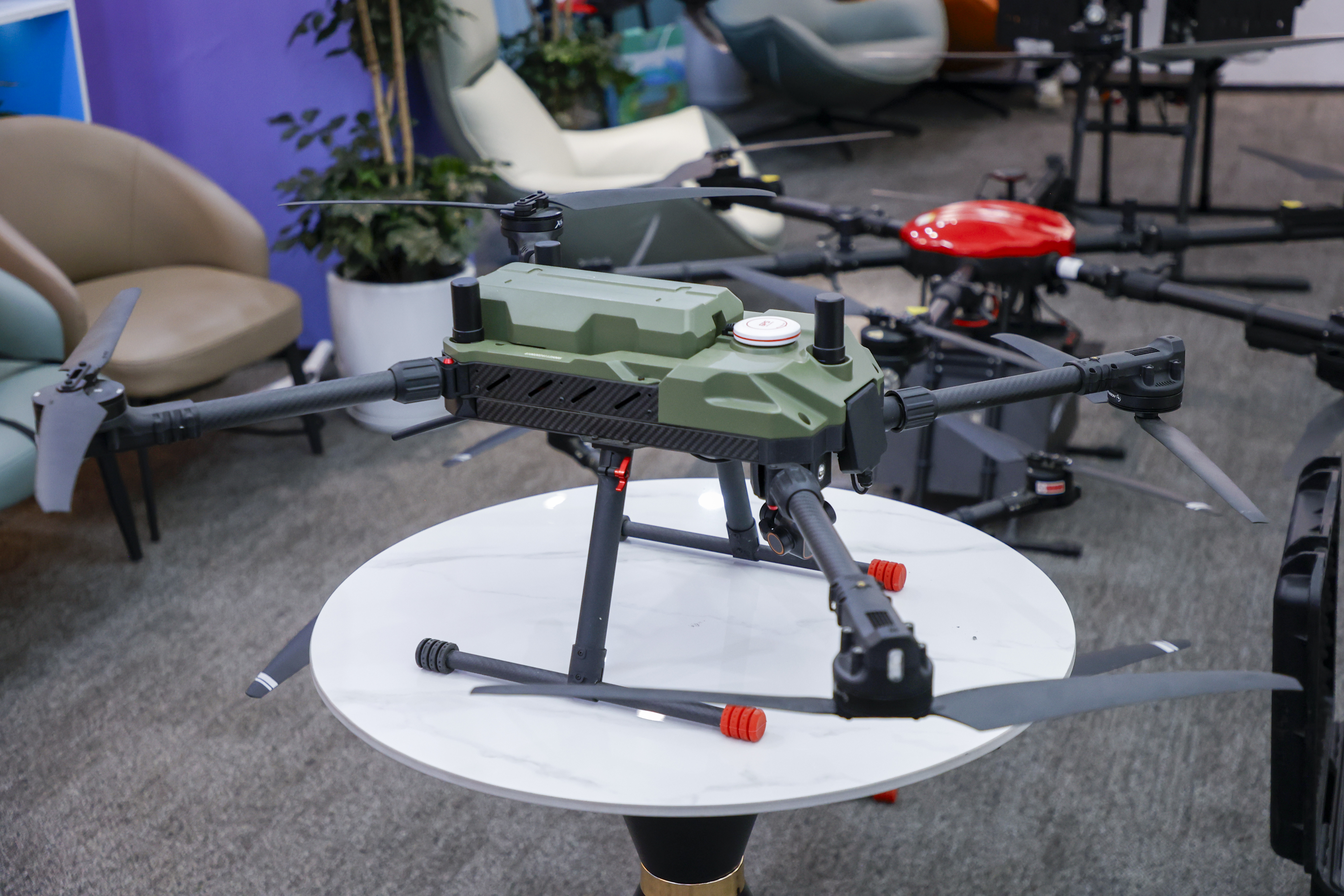 步入活動現(xiàn)場,依次擺放的多款無人機產(chǎn)品十分“扯眼球”,將現(xiàn)場科技感拉滿?!盀榱舜舜位顒樱覀儙砹藦?0公斤到100公斤的4款無人機產(chǎn)品,可以應(yīng)用在巡航監(jiān)控、物流運輸、夜間照明作業(yè)等多種場景中?!背啥紤c軍科技有限公司市場負(fù)責(zé)人王保林認(rèn)為,活動為企業(yè)提供了一個精準(zhǔn)的產(chǎn)品對接交流平臺,“前期,我們也做了充足的準(zhǔn)備,在世運會安保維穩(wěn)、人員疏散、物資運輸?shù)阮I(lǐng)域希望能實現(xiàn)進(jìn)一步對接?!?/p>