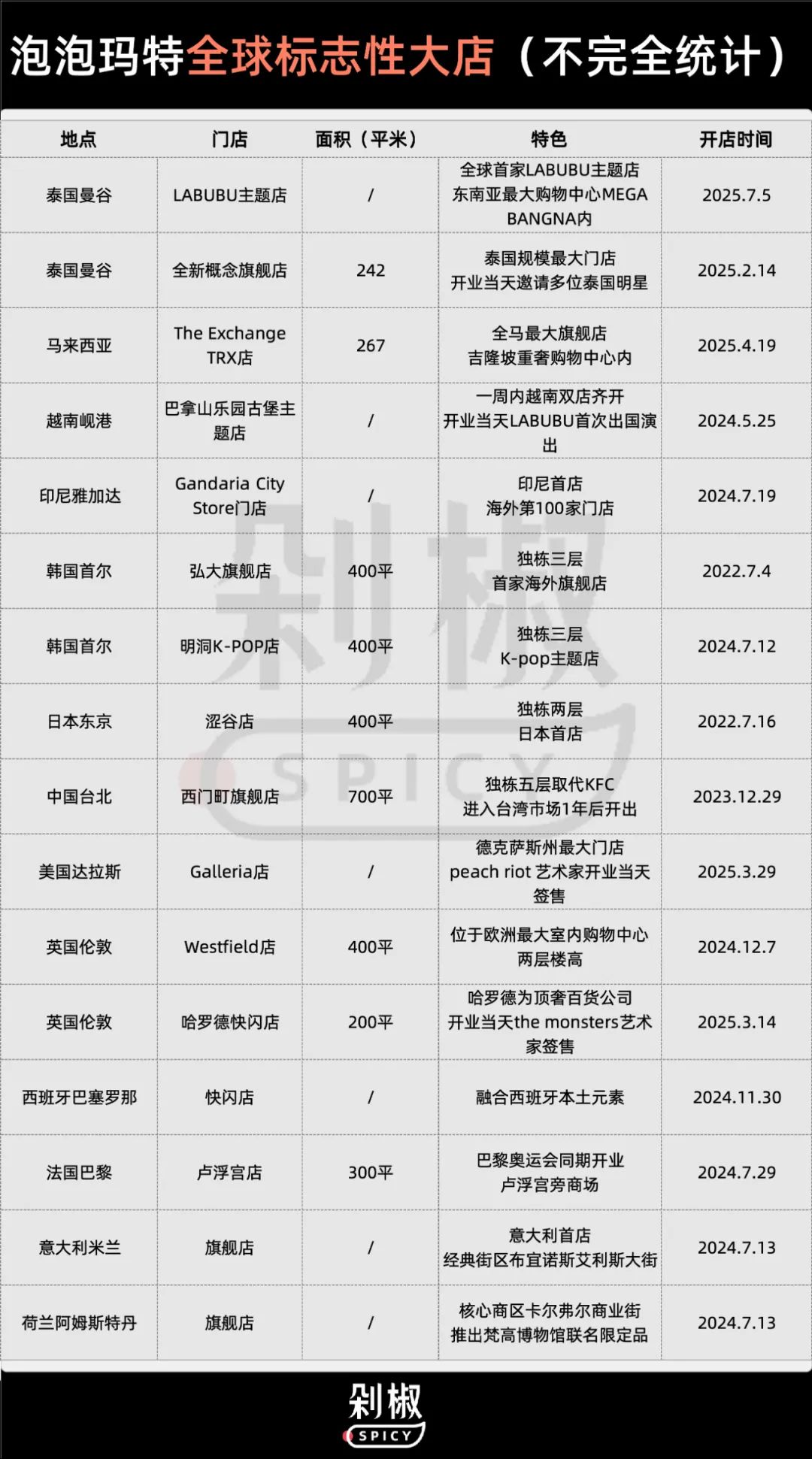 泡泡瑪特標志性大店不完全統(tǒng)計