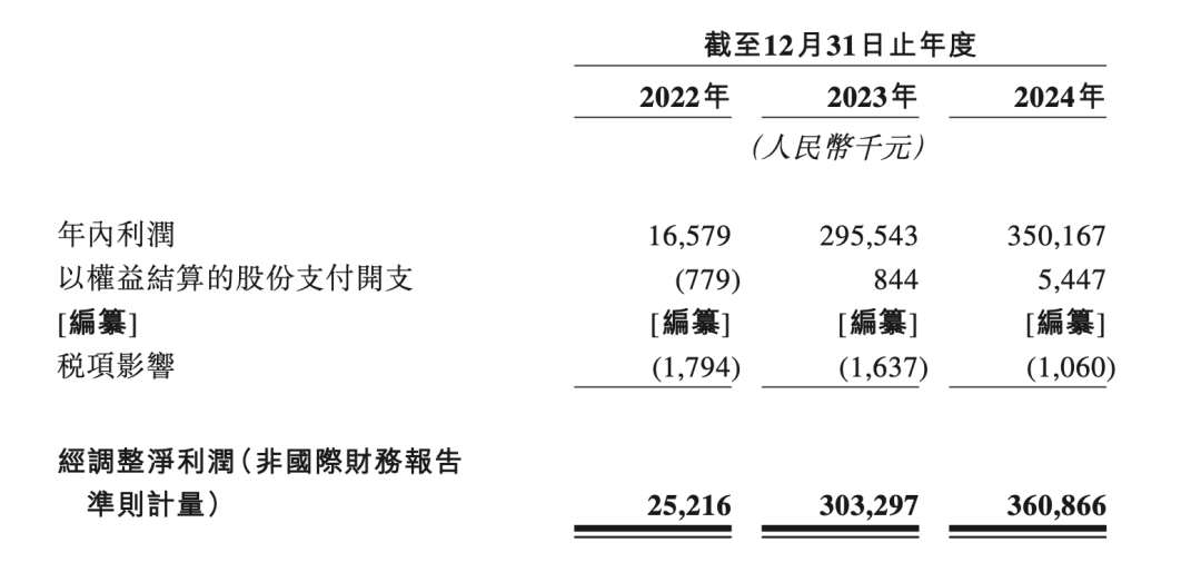 業(yè)績(jī)方面,2022年、2023年和2024年,綠茶集團(tuán)的營(yíng)收分別約為23.75億元、35.89億元和38.38億元,凈利潤(rùn)分別約為1657.9萬元、2.96億元和3.5億元,經(jīng)調(diào)整凈利潤(rùn)分別約為2521.6萬元、3.03億元和3.61億元。