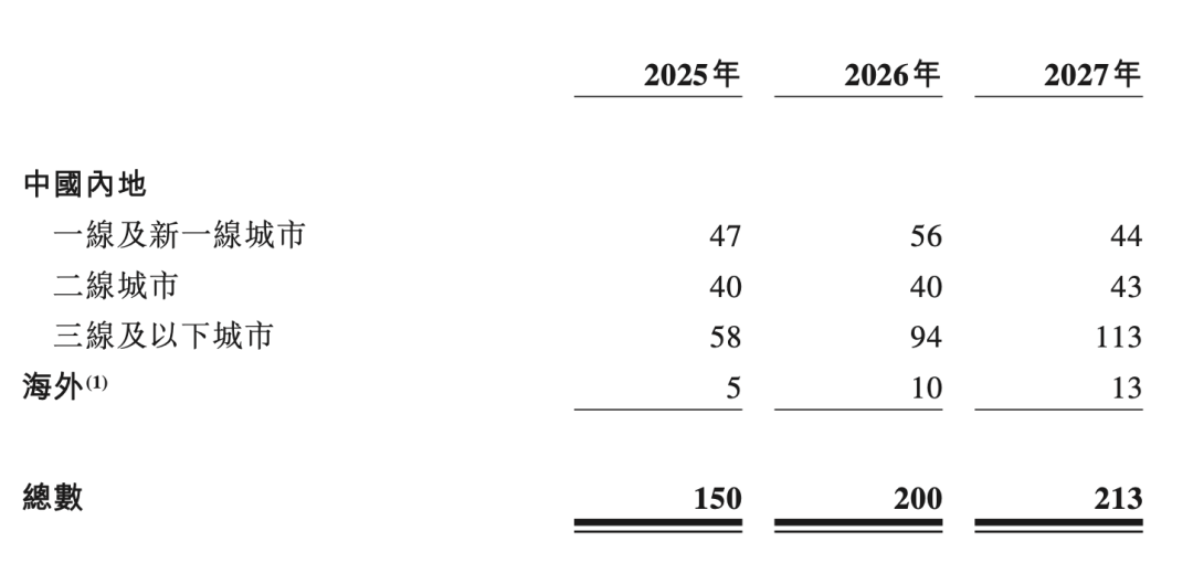 在快速開店的同時(shí),綠茶餐廳也在加速下沉。按其披露的計(jì)劃,2025年至2027年,綠茶餐廳將拓展563家門店,二線、三線及以下城市將拓展385家,占比高達(dá)68.38%。另外,三年內(nèi)也將新開28家海外店以充實(shí)發(fā)展版圖。