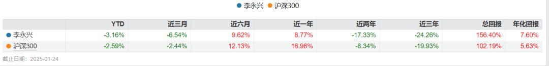直到2025年1月,李永興7只產(chǎn)品全部卸任完畢。這位老將離職前,總回報達(dá)到156.4%,卻終難成全能“戰(zhàn)士”。