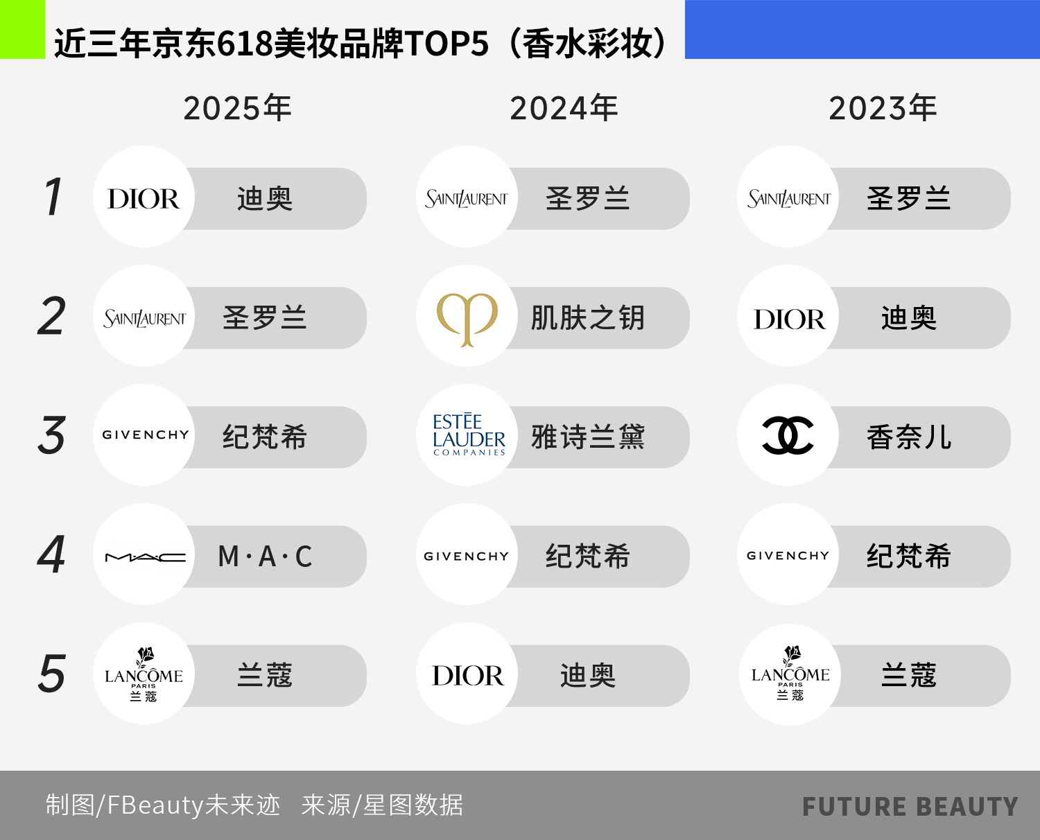 在香水彩妝品類中,今年的前五名為迪奧、圣羅蘭、紀(jì)梵希、M·A·C、蘭蔻,迪奧打破圣羅蘭連續(xù)兩年登頂?shù)挠涗?,成為品牌第一?/p>