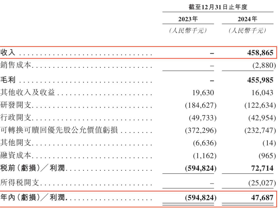 正是因為有了這些授權合作,岸邁生物的業(yè)績才得以“大逆轉”。招股書顯示,2024年,其實現收入4.59億元、利潤4768.7萬元。