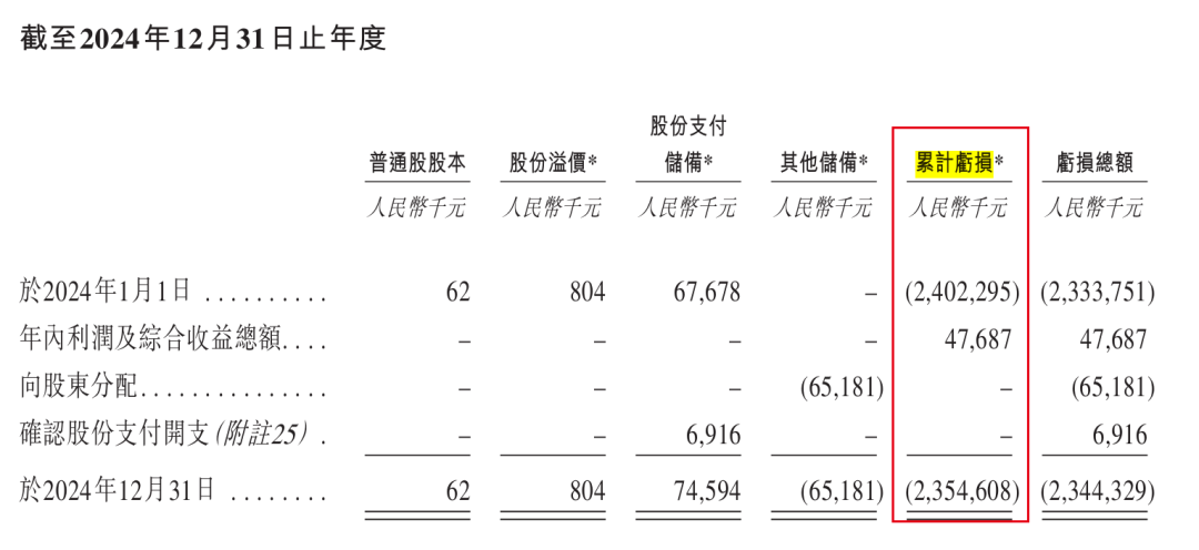 只不過,在長期虧損面前,這些盈利也只是杯水車薪。截至2024年12月31日,公司累計虧損高達23.55億元。