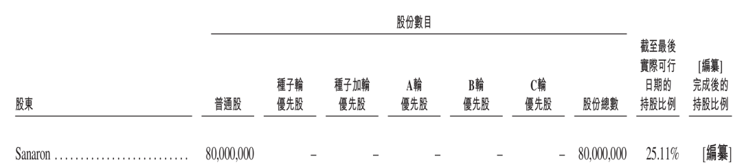 IPO前,吳辰冰和其家族信托透過Sanaron控制公司25.11%股權,是岸邁生物最大單一股東集團。