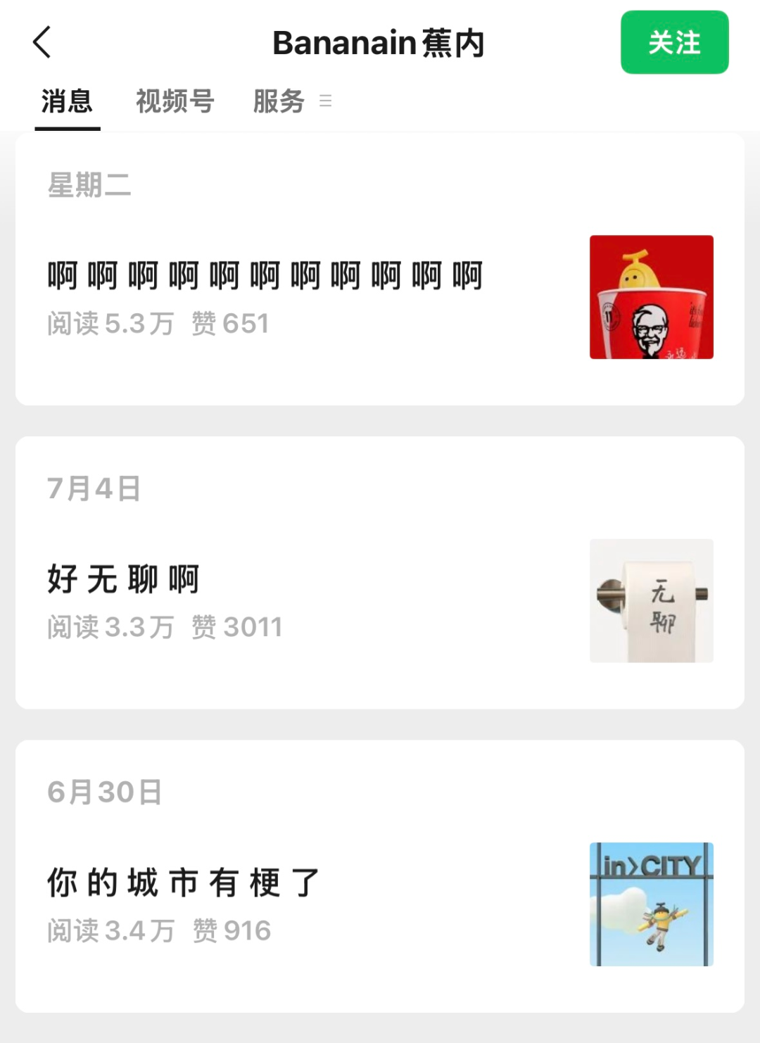 從公眾號的運營痕跡來看,蕉內(nèi)的標(biāo)題、文案以及其中的視覺表達,基本對標(biāo)了內(nèi)容自媒體中的第一梯隊——曾經(jīng)的GQ實驗室,而它的效果也是顯而易見的。