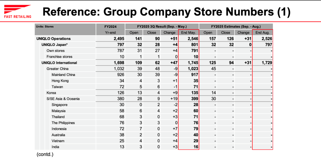 而迅銷集團最新發(fā)布2025財年第三季度財報顯示,優(yōu)衣庫大中華區(qū)的營收和營業(yè)利潤分別下滑5%和3%,而從門店數(shù)量來看,大中華區(qū)前三季度又關(guān)閉了9家門店。