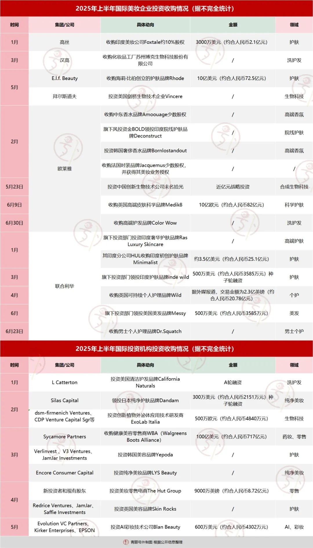 與此同時(shí),韓國市場(chǎng)同樣吸引了國際資本,上半年共完成3起重要交易,涉及高端香氛、彩妝及洗護(hù)發(fā)等領(lǐng)域,總交易估值超過44億元人民幣。