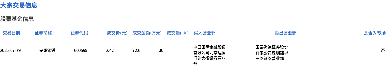 7月29日,安陽(yáng)鋼鐵大宗交易成交30萬(wàn)股,成交額72.6萬(wàn)元,占當(dāng)日總成交額的0.5%,成交價(jià)2.42元,較市場(chǎng)收盤價(jià)2.42元持平。
