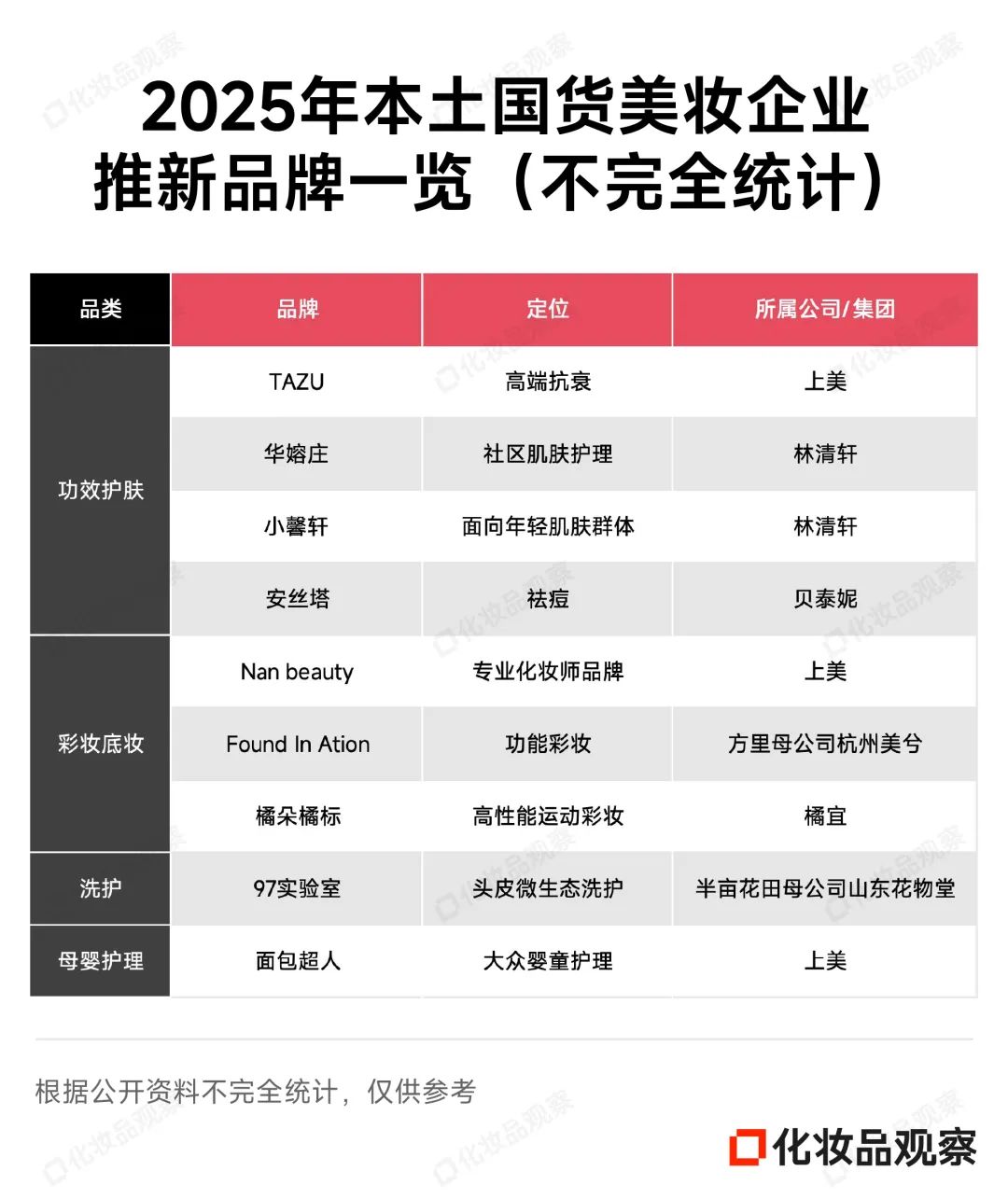 2025年截至目前,已有至少9個新品牌亮相或處于籌備階段。構(gòu)建多品牌矩陣,已成為頭部美妝集團(tuán)角逐市場的關(guān)鍵要素。