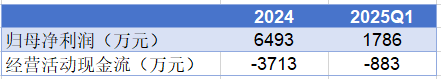大摩半導(dǎo)體2024年和2025年第一季度經(jīng)營活動產(chǎn)生的現(xiàn)金流分別為-3713萬元和-883萬元,與同期凈利潤存在較大背離。