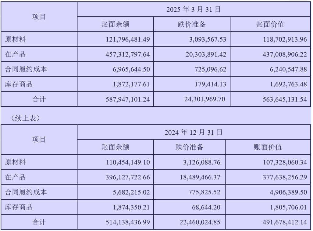 進(jìn)一步拆分看,大摩半導(dǎo)體2025年一季度末的5.64億元存貨中,“在產(chǎn)品“有4.37億元,占比達(dá)到77.5%,表明公司產(chǎn)品生產(chǎn)周期較長。