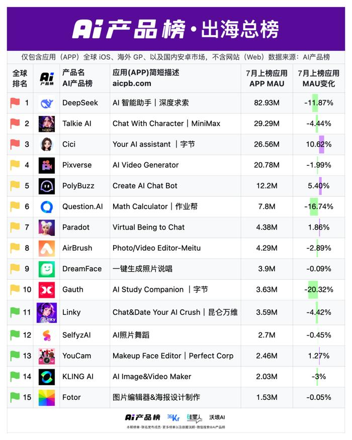 根據(jù)AI產(chǎn)品榜發(fā)布的7月最新AI榜單,萬興旗下AI圖片編輯軟件SelfyzAI排名出海總榜的第十二位。