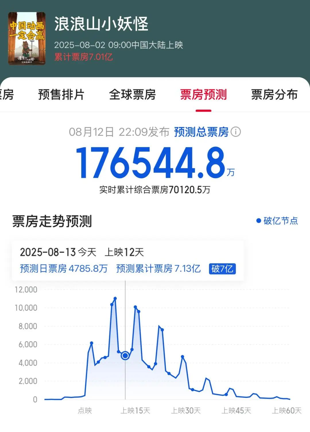 上映首周末,該片預(yù)測(cè)票房剛過(guò)4億,與《羅小黑戰(zhàn)記2》的體量相當(dāng)。上映當(dāng)日,《浪浪山小妖怪》豆瓣開(kāi)分8.6,經(jīng)過(guò)一周的口碑發(fā)酵以及“親子友好”的宣傳,第二周周日一度超過(guò)《南京照相館》成為日票房冠軍,最新預(yù)測(cè)票房已經(jīng)超過(guò)17億。