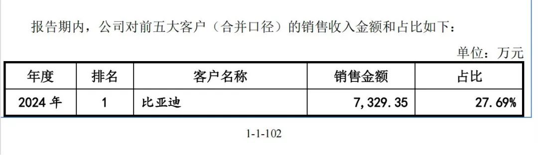 縱觀《招股書》發(fā)現(xiàn),過去三年,比亞迪始終穩(wěn)居大鵬工業(yè)第一大客戶,銷售收入分別為1.24億元、0.46億元、0.73億元,占當(dāng)年營收的49.95%、17.83%、27.69%。三年時間銷售收入合計占總收入約三成。