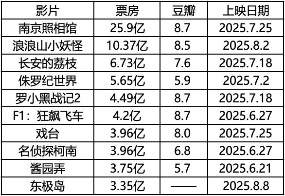 今年暑期檔正式突破100億大關!完成了一波精彩的后程發(fā)力。