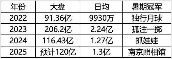 從往年的數(shù)據(jù)來看,2023年的高峰就不用說了,或許未來幾年都難以超越,連續(xù)的爆款輸出讓它突破200億大關,成為了標桿式的存在。而2024年迎來大幅的下滑,其下滑幅度達到了44%,其中多部種子選手都未能跑出應有的成績,僅?!蹲ネ尥蕖芬患褐嗫嘀问袌?。