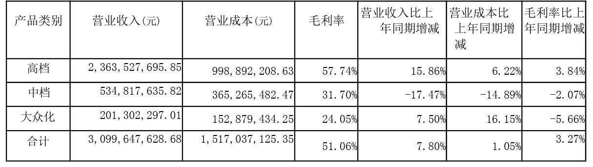 從產品來看,珠江啤酒的高端產品營收占比和毛利率水平已經達到了一定高度,進一步上升空間有限,它還需要解決另外兩個檔次產品存在的問題。