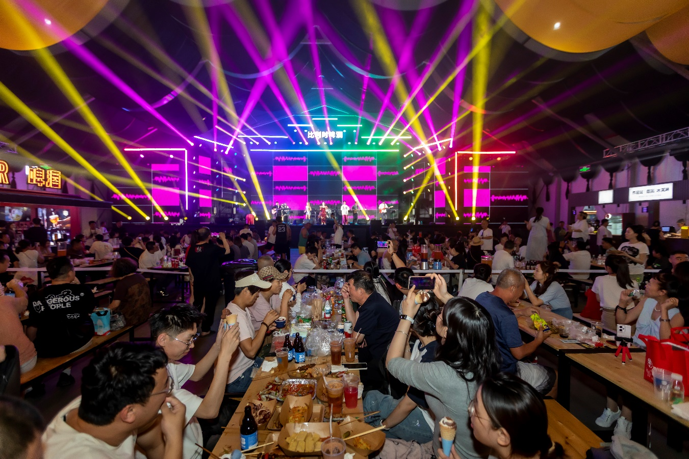 每晚的夢想大舞臺(tái),左右哥領(lǐng)銜萬人蹦迪釋放壓力,實(shí)力唱將傾情獻(xiàn)唱,大型奇幻秀《王的戰(zhàn)車》表演秀、勁歌熱舞、相聲等演出輪番登場,更有啤酒達(dá)人挑戰(zhàn)賽、冰盲盒尋寶、啃玉米大賽等互動(dòng)活動(dòng)吸引眾多游客踴躍參與,將現(xiàn)場氣氛一次次推向高潮。