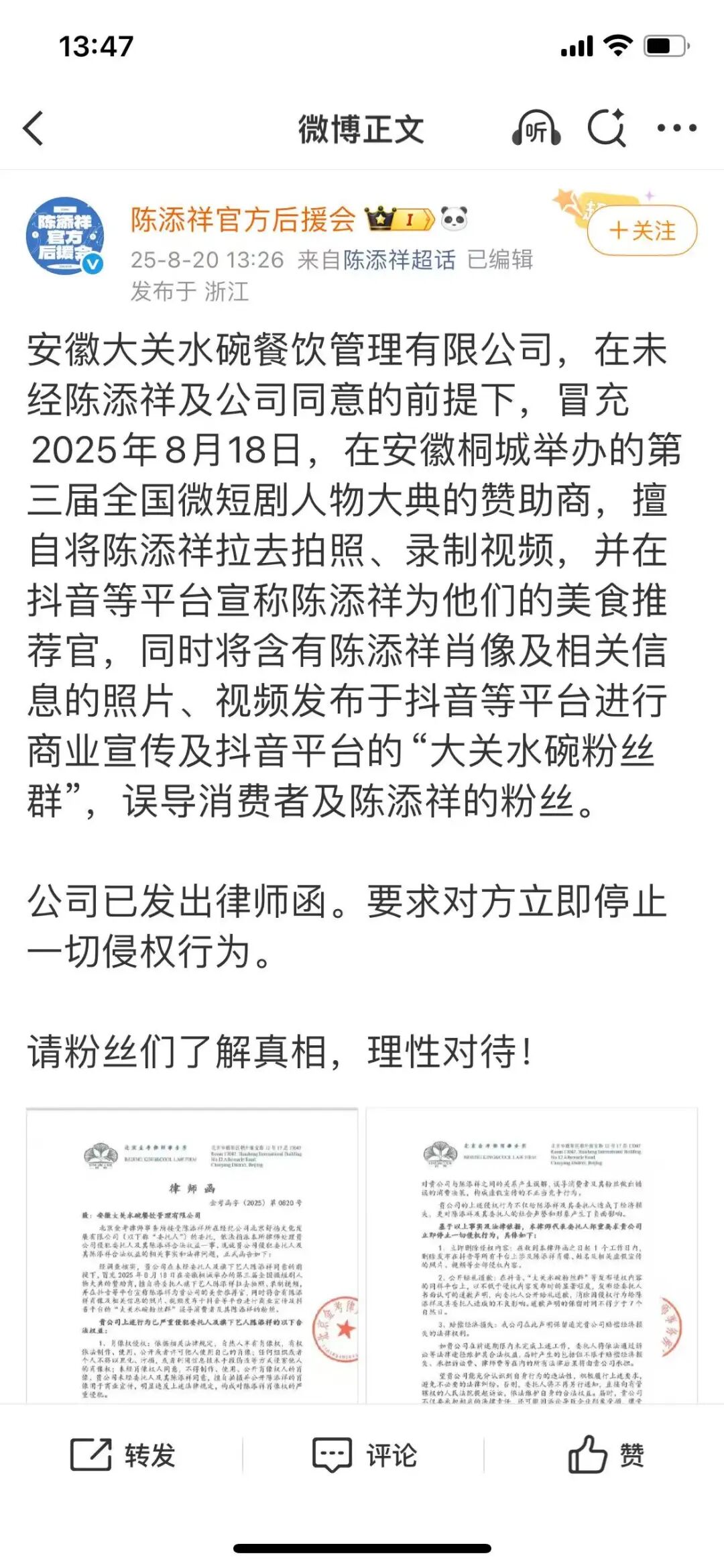 自然邀約越來越多,也免不了有些不靠譜的情況。8月中旬,已經(jīng)塌過一次的初代短劇F4何健麒再次攤上事,被發(fā)了一份勸退某機(jī)構(gòu)理事身份的通報(bào)。然而仔細(xì)一瞅,機(jī)構(gòu)并非什么官方機(jī)構(gòu),糾紛也只是線下待遇沒談攏。