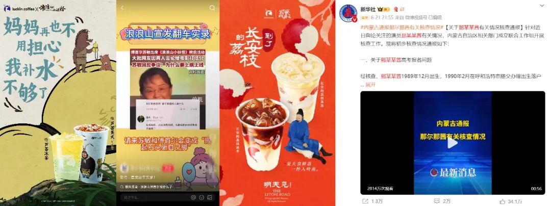 例如,《浪浪山小妖怪》在上映前同時授權(quán)近50個品牌(詳見:預(yù)測票房沖擊15億,《浪浪山小妖怪》能讓哪些公司賺錢? | 雷報),卻因一場觀影活動的嘉賓發(fā)言引發(fā)輿論危機,片方“宣發(fā)翻車”,所有合作品牌也受到一定程度的波及。類似的片方“翻車”案例不在少數(shù),同在暑期檔發(fā)生的,還有《長安的荔枝》電視劇演員高考造假的輿情。這類風(fēng)險在平臺分包模式下尤為突出。